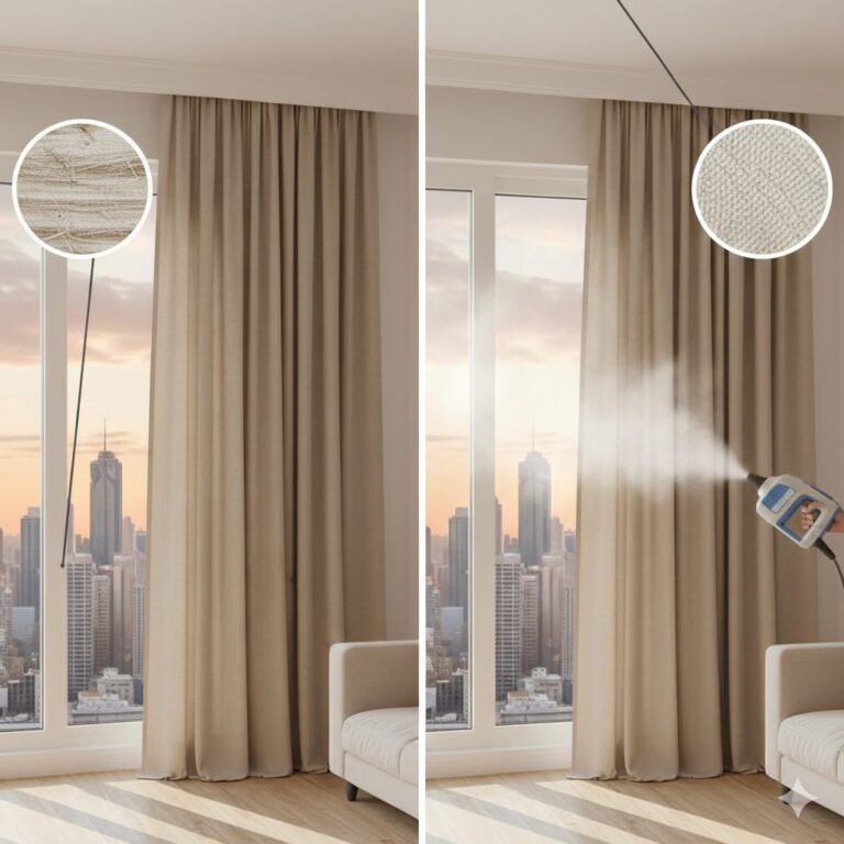 خطوات تنظيف ستائر بالبخار في البيت بدون فك